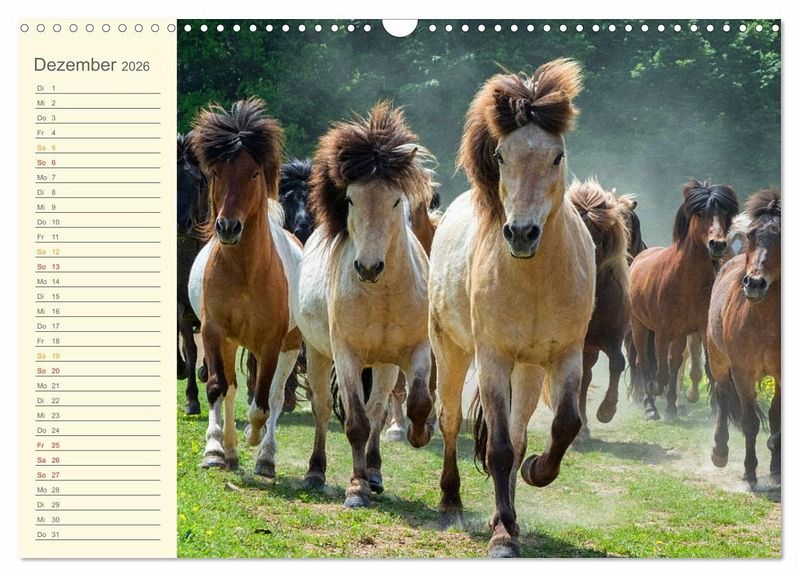 Auch im digitalen Zeitalter ist ein Kalender aus Papier eine wunderbare Art, sich an Termine erinnern zu lassen. Erfreuen Sie sich beim täglichen Blick auf den Kalender an 12 herrlichen Islandpferdebildern.
