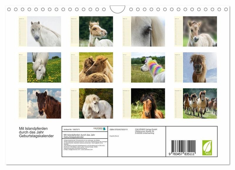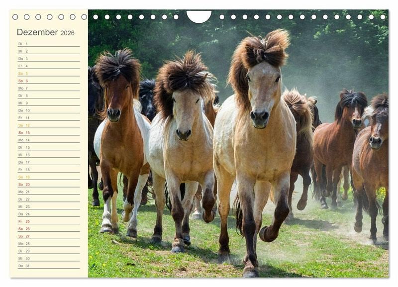 Auch im digitalen Zeitalter ist ein Kalender aus Papier eine wunderbare Art, sich an Termine erinnern zu lassen. Erfreuen Sie sich beim täglichen Blick auf den Kalender an 12 herrlichen Islandpferdebildern.
