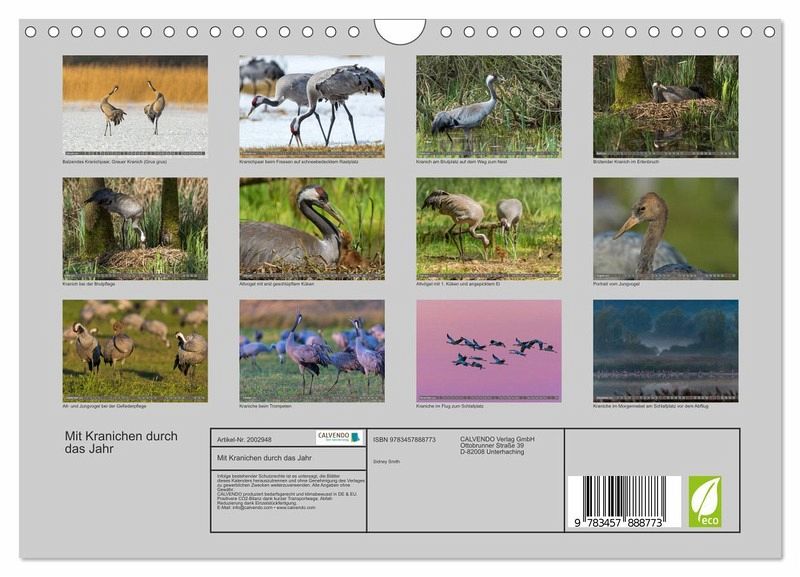 QUALITÄT - Hochwertiger Fotokalender mit 12 wunderschönen Motiven auf lichtbeständigem Bilderdruckpapier, robuste Spiralbindung mit Aufhängebügel.NACHHALTIG - deutliche Abfallreduzierung durch bedarfsgerechte Einzelstückfertigung, umweltfreundliches FSC-zertifiziertes Papier, Produktion in Deutschland, klimabewusste Logistik.PERFEKTES GESCHENK - Kalender für Freunde und Familie, für Kinder und Erwachsene, jung und alt, zu Weihnachten, Geburtstag oder zwischendurch.VIELFALT - Bildkalender in verschiedenen Formaten, z.B. DIN A5, DIN A4, DIN A3 sowie DIN A2. Ob Naturmotiv, Gemälde oder Fotos, ideal für ein persönliches Wohlfühlambiente.Kraniche, die größten Vögel Deutschlands, werden in eindrucksvollen Fotografien gezeigt. von Autor(in): Sabine Smith