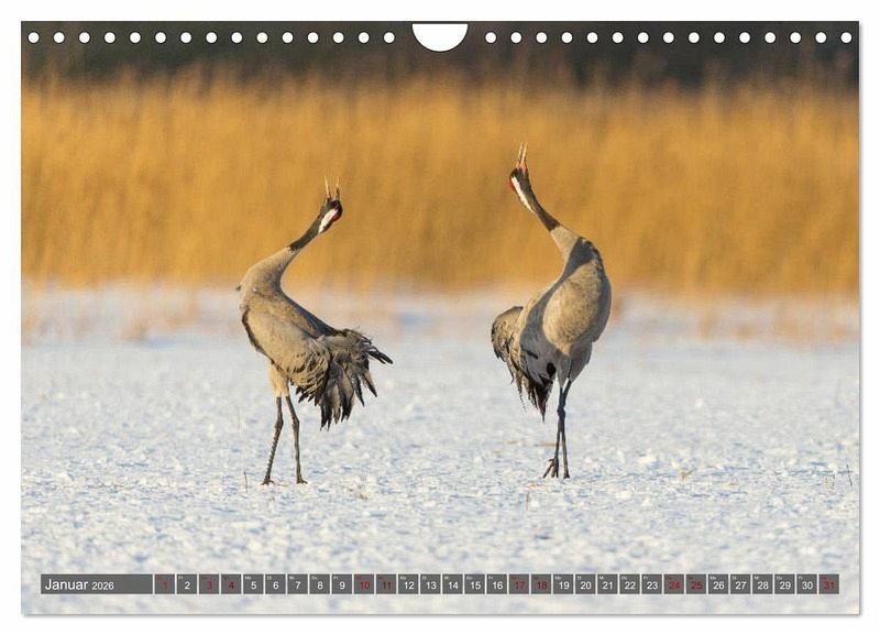 Januar: Balzendes Kranichpaar, Grauer Kranich (Grus grus)