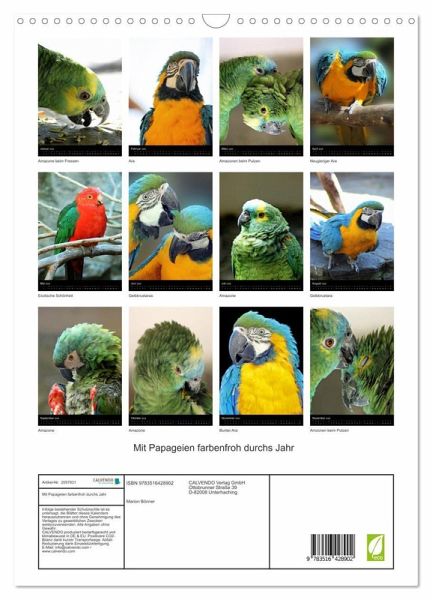 QUALITÄT - Hochwertiger Fotokalender mit 12 wunderschönen Motiven auf lichtbeständigem Bilderdruckpapier, robuste Spiralbindung mit Aufhängebügel.NACHHALTIG - deutliche Abfallreduzierung durch bedarfsgerechte Einzelstückfertigung, umweltfreundliches FSC-zertifiziertes Papier, Produktion in Deutschland, klimabewusste Logistik.PERFEKTES GESCHENK - Kalender für Freunde und Familie, für Kinder und Erwachsene, jung und alt, zu Weihnachten, Geburtstag oder zwischendurch.VIELFALT - Bildkalender in verschiedenen Formaten, z.B. DIN A5, DIN A4, DIN A3 sowie DIN A2. Ob Naturmotiv, Gemälde oder Fotos, ideal für ein persönliches Wohlfühlambiente.Liebenswerte Papageien im Portrait von Autor(in): Marion Bönner