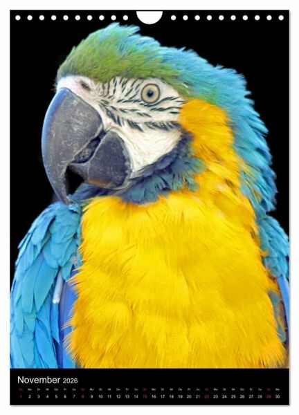 Diese intelligenten, farbenprächtigen Vögel begleiten Sie durch das Jahr. Liebevolle Momentaufnahmen der schönen Tiere - beim Fressen, beim Putzen des Gefieders, beim neugierigen Betrachten des Fotografen. Aufgenommen mit Genehmigung der Vogelburg Weilrod.