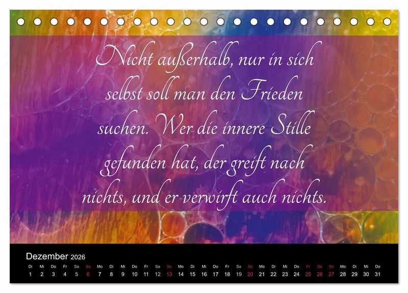 Buddhas Weisheiten, so alt und doch so aktuell. Gerade in der heutigen Zeit hilft er uns unser Augenmerk auf die wichtigen Dinge des Lebens zu lenken. Genießen Sie die Augenblicke des Nachdenkens, kommen Sie zur Ruhe und lassen Sie los.