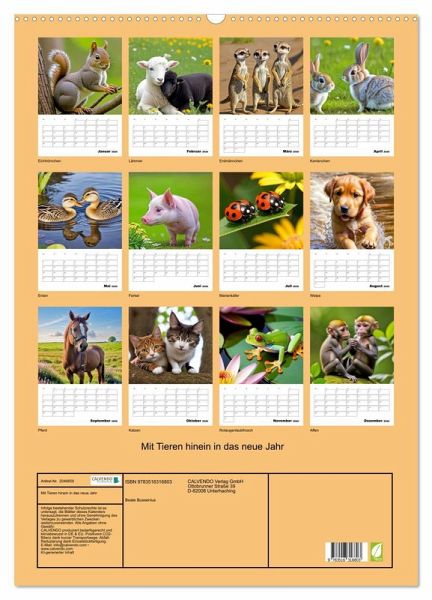 Ein Tierkalender, der die Vielfalt der Tierwelt in beeindruckenden Bildern präsentiert. Jeder Monat enthält ein faszinierendes Foto eines Tieres. Ein perfekter Begleiter für Tierliebhaber und Naturfreunde. Die Fotos wurden mit KI erstellt.