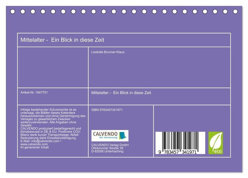 QUALITÄT - Hochwertiger Fotokalender mit 12 wunderschönen Motiven auf lichtbeständigem Bilderdruckpapier, robuste Spiralbindung.NACHHALTIG - deutliche Abfallreduzierung durch bedarfsgerechte Einzelstückfertigung, umweltfreundliches FSC-zertifiziertes Papier, Produktion in Deutschland, klimabewusste Logistik.PERFEKTES GESCHENK - Kalender für Freunde und Familie, für Kinder und Erwachsene, jung und alt, zu Weihnachten, Geburtstag oder zwischendurch.VIELFALT - Bildkalender in verschiedenen Formaten, z.B. DIN A5, DIN A4, DIN A3 sowie DIN A2. Ob Naturmotiv, Gemälde oder Fotos, ideal für ein persönliches Wohlfühlambiente.Mittelalterliches Leben von Autor(in): Liselotte Brunner-Klaus