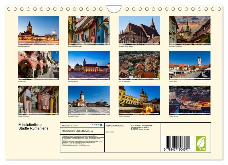 QUALITÄT - Hochwertiger Fotokalender mit 12 wunderschönen Motiven auf lichtbeständigem Bilderdruckpapier, robuste Spiralbindung mit Aufhängebügel.NACHHALTIG - deutliche Abfallreduzierung durch bedarfsgerechte Einzelstückfertigung, umweltfreundliches FSC-zertifiziertes Papier, Produktion in Deutschland, klimabewusste Logistik.PERFEKTES GESCHENK - Kalender für Freunde und Familie, für Kinder und Erwachsene, jung und alt, zu Weihnachten, Geburtstag oder zwischendurch.VIELFALT - Bildkalender in verschiedenen Formaten, z.B. DIN A5, DINA4, DIN A3 sowie DIN A2. Ob Naturmotiv, Gemälde oder Fotos, ideal für ein persönliches Wohlfühlambiente.Ein Streifzug durch die mittelalterlichen Städte Rumäniens von Autor(in): Roland Brack