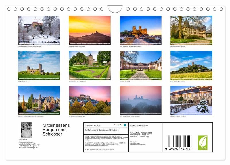 QUALITÄT - Hochwertiger Fotokalender mit 12 wunderschönen Motiven auf lichtbeständigem Bilderdruckpapier, robuste Spiralbindung mit Aufhängebügel.NACHHALTIG - deutliche Abfallreduzierung durch bedarfsgerechte Einzelstückfertigung, umweltfreundliches FSC-zertifiziertes Papier, Produktion in Deutschland, klimabewusste Logistik.PERFEKTES GESCHENK - Kalender für Freunde und Familie, für Kinder und Erwachsene, jung und alt, zu Weihnachten, Geburtstag oder zwischendurch.VIELFALT - Bildkalender in verschiedenen Formaten, z.B. DIN A5, DIN A4, DIN A3 sowie DIN A2. Ob Naturmotiv, Gemälde oder Fotos, ideal für ein persönliches Wohlfühlambiente.13 farbenfrohe romantische Ansichten von Mittelhessens Burgen- und Schlösserwelt von Autor(in): Silke Koch