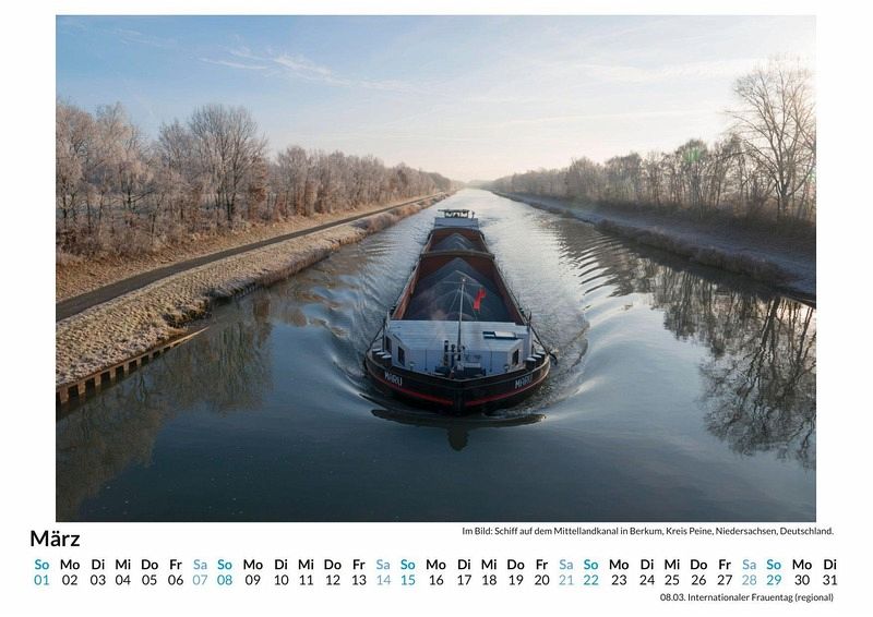 Entdecken Sie die faszinierende Welt des Mittellandkanals mit unserem exklusiven Wandkalender! Dieser Kalender zeigt 12 atemberaubende Motive, die die Schönheit und Vielfalt dieses beeindruckenden Wasserwegs in Deutschland einfangen. Jedes Bild wurde sorgfältig ausgewählt und auf hochwertigem, lichtbeständigem Bilderdruckpapier gedruckt, um Ihnen das ganze Jahr über Freude zu bereiten. Gedruckt in Deutschland auf FSC-zertifiziertem Papier, vereint dieser Kalender Nachhaltigkeit und Ästhetik. Perfekt für Liebhaber von Natur, Technik und Wasserwegen - holen Sie sich ein Stück deutsche Ingenieurskunst und Landschaftsromantik nach Hause! Ideal auch als Geschenk! Hochwertig Erleben Sie ein Jahr voller Eleganz mit unserem Premium-Fotokalender. Jedes der 12 Motive ist auf hochwertigem, lichtbeständigem Bilderdruckpapier gedruckt, um die Lebendigkeit jedes Bildes zu bewahren. Die robuste Spiralbindung gewährleistet Langlebigkeit und einfache Handhabung. Nachhaltig Unser Engagement für die Umwelt spiegelt sich in jedem Exemplar wider. Durch die Produktion auf Abruf reduzieren wir signifikant unseren Abfall. Wir verwenden ausschließlich umweltfreundliches, FSC-zertifiziertes Papier. Stolz gefertigt in Deutschland, achten wir bei unserer Logistik auf Klimaschutz, um unseren ökologischen Fußabdruck zu minimieren. Das ideale Geschenk Dieser Kalender ist das perfekte Präsent für jeden Anlass - ob Weihnachten, Geburtstage oder einfach als liebevolle Aufmerksamkeit zwischendurch. Geeignet für Freunde, Familie, Kinder und Erwachsene gleichermaßen, bereichert er jedes Zuhause mit seiner Vielfalt und Schönheit, unabhängig vom Alter der Beschenkten.