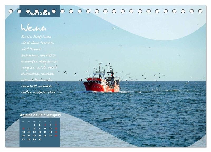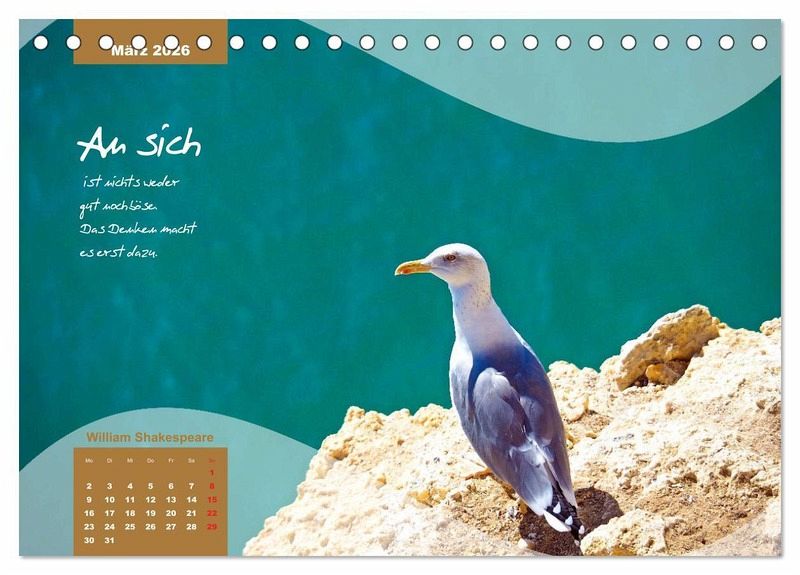 Haben Sie Sehnsucht nach Meer, Sonne, Strand und Wellen zum Erholen und Entspannen, dann ist dieser Kalender genau das Richtige! Natürlich ist er auch ein willkommenes Geschenk für Familie und Freunde. Betrachten Sie die 12 wunderschöne Fotografien und lesen Sie die Zitaten und versetzten sich damit an`s Meer, spüren Sie die Sonne auf Ihrer Haut und riechen Sie das Salzwasser.