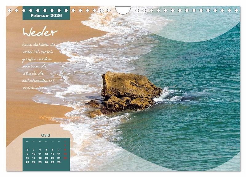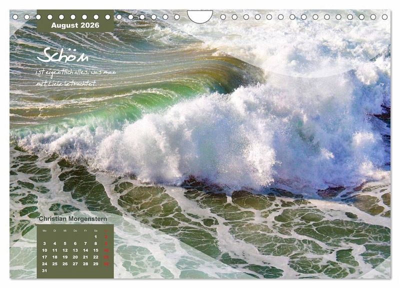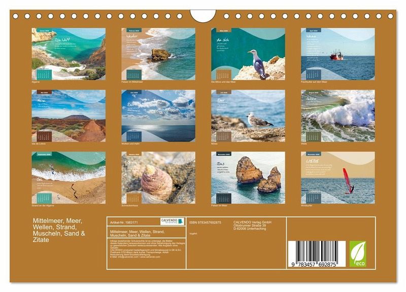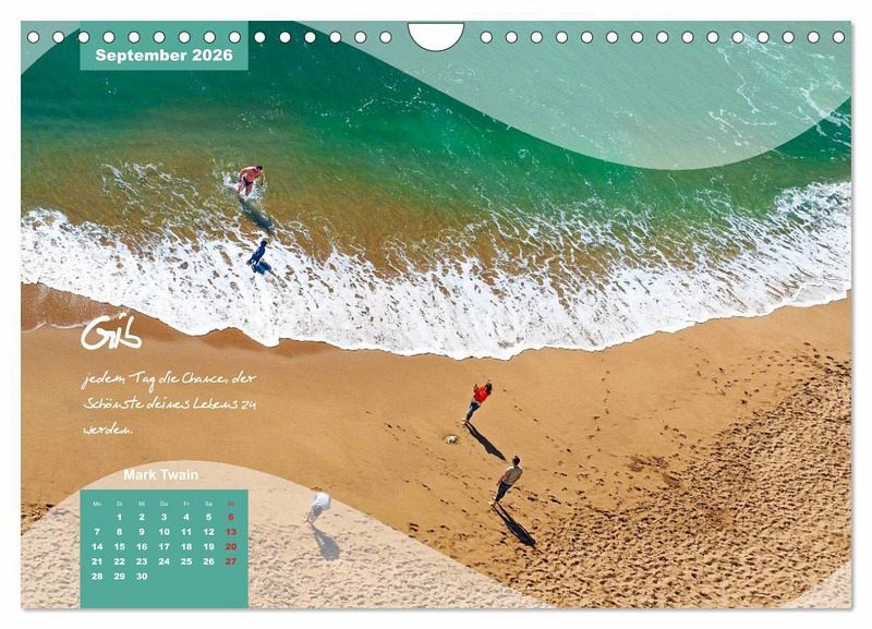 Haben Sie Sehnsucht nach Meer, Sonne, Strand und Wellen zum Erholen und Entspannen, dann ist dieser Kalender genau das Richtige! Natürlich ist er auch ein willkommenes Geschenk für Familie und Freunde. Betrachten Sie die 12 wunderschöne Fotografien und lesen Sie die Zitaten und versetzten sich damit an`s Meer, spüren Sie die Sonne auf Ihrer Haut und riechen Sie das Salzwasser.