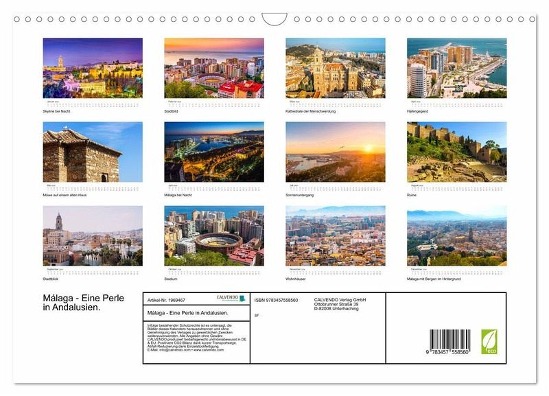 Málaga strahlt mit spanischem Charme. Umgeben von wunderschönen Landschaften wie Bergen auf der eine Seite und das Mittelmeer auf der anderen Seite, gibt es hier alles was das Herz begehrt. Dieser Kalender zeigt 12 wunderschöne Motive von der schönen spanischen Stadt.