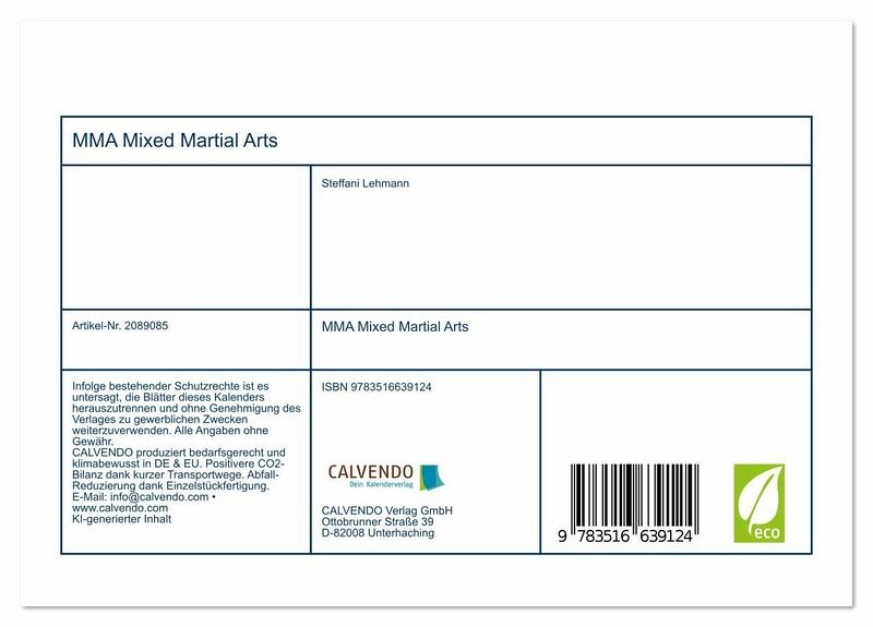 Erlebe die ganze Wucht, Präzision und Dynamik des Mixed Martial Arts in 12 beeindruckenden Bildern, die Steffani Lehmann mit Unterstützung einer KI editiert hat. Der Kalender zeigt realistische Trainings- und Kampfszenen mit Männern und Frauen. Jede Szene fängt die Spannung und Intensität dieses einzigartigen Sports ein - kraftvoll, athletisch und hautnah.
