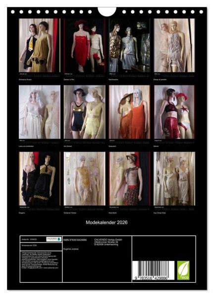 QUALITÄT - Hochwertiger Fotokalender mit 12 wunderschönen Motiven auf lichtbeständigem Bilderdruckpapier, robuste Spiralbindung mit Aufhängebügel.NACHHALTIG - deutliche Abfallreduzierung durch bedarfsgerechte Einzelstückfertigung, umweltfreundliches FSC-zertifiziertes Papier, Produktion in Deutschland, klimabewusste Logistik.PERFEKTES GESCHENK - Kalender für Freunde und Familie, für Kinder und Erwachsene, jung und alt, zu Weihnachten, Geburtstag oder zwischendurch.PERFEKTES GESCHENK - Kalender für Freunde und Familie, für Erwachsene, zu Weihnachten, Geburtstag oder zwischendurch.In diesem Projekt wird die aktuelle Damenkollektion von Modedesignerin Eugenja Jurjewa vorgestellt. von Autor(in): Ewa