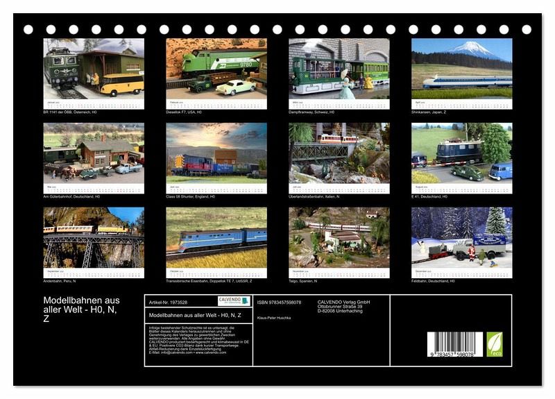 Fast überall auf der Welt sind Modelleisenbahnen ein beliebtes Hobby. Unser Kalender präsentiert eine internationale Auswahl sehenswerter Eisenbahnanlagen in den Maßstäben, H0, N und Z.