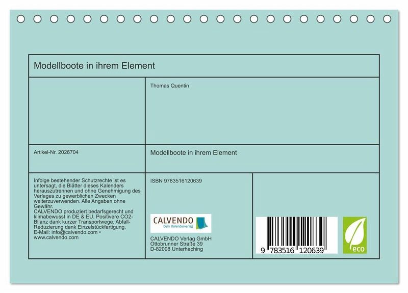 QUALITÄT - Hochwertiger Fotokalender mit 12 wunderschönen Motiven auf lichtbeständigem Bilderdruckpapier, robuste Spiralbindung.NACHHALTIG - deutliche Abfallreduzierung durch bedarfsgerechte Einzelstückfertigung, umweltfreundliches FSC-zertifiziertes Papier, Produktion in Deutschland, klimabewusste Logistik.PERFEKTES GESCHENK - Kalender für Freunde und Familie, für Kinder und Erwachsene, jung und alt, zu Weihnachten, Geburtstag oder zwischendurch.VIELFALT - Bildkalender in verschiedenen Formaten, z.B. DIN A5, DIN A4, DIN A3 sowie DIN A2. Ob Naturmotiv, Gemälde oder Fotos, ideal für ein persönliches Wohlfühlambiente.Faszinierende Modellboote in ihrem Element von Autor(in): Thomas Quentin