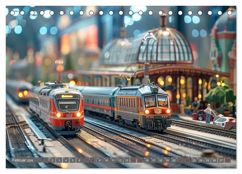 Entdecken Sie die faszinierende Welt der Modelleisenbahnen mit unserem einzigartigen Kalender! Jedes Bild wurde sorgfältig ausgewählt und zeigt die Vielfalt und Schönheit dieses zeitlosen Hobbys. Dank modernster KI-Technologie präsentieren wir Ihnen eine Auswahl an Bildern, die Ihre Fantasie beflügeln und Sie in die Miniaturwelt der Eisenbahnen entführen.