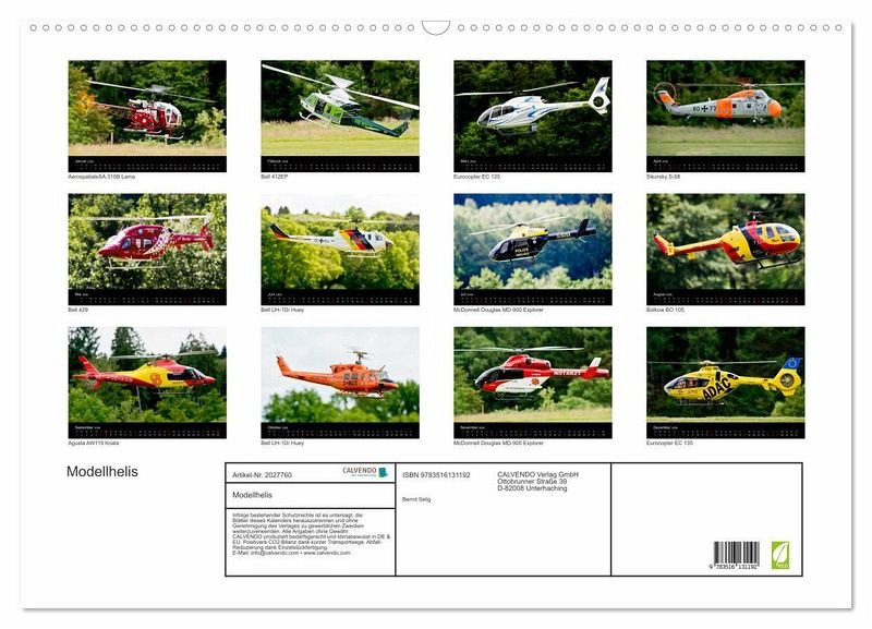 QUALITÄT - Hochwertiger Fotokalender mit 12 wunderschönen Motiven auf lichtbeständigem Bilderdruckpapier, robuste Spiralbindung mit Aufhängebügel.NACHHALTIG - deutliche Abfallreduzierung durch bedarfsgerechte Einzelstückfertigung, umweltfreundliches FSC-zertifiziertes Papier, Produktion in Deutschland, klimabewusste Logistik.PERFEKTES GESCHENK - Kalender für Freunde und Familie, für Kinder und Erwachsene, jung und alt, zu Weihnachten, Geburtstag oder zwischendurch.VIELFALT - Bildkalender in verschiedenen Formaten, z.B. DIN A5, DIN A4, DIN A3 sowie DIN A2. Ob Naturmotiv, Gemälde oder Fotos, ideal für ein persönliches Wohlfühlambiente.Modellhelikopter im Flug fotografiert von Autor(in): Bernd Selig