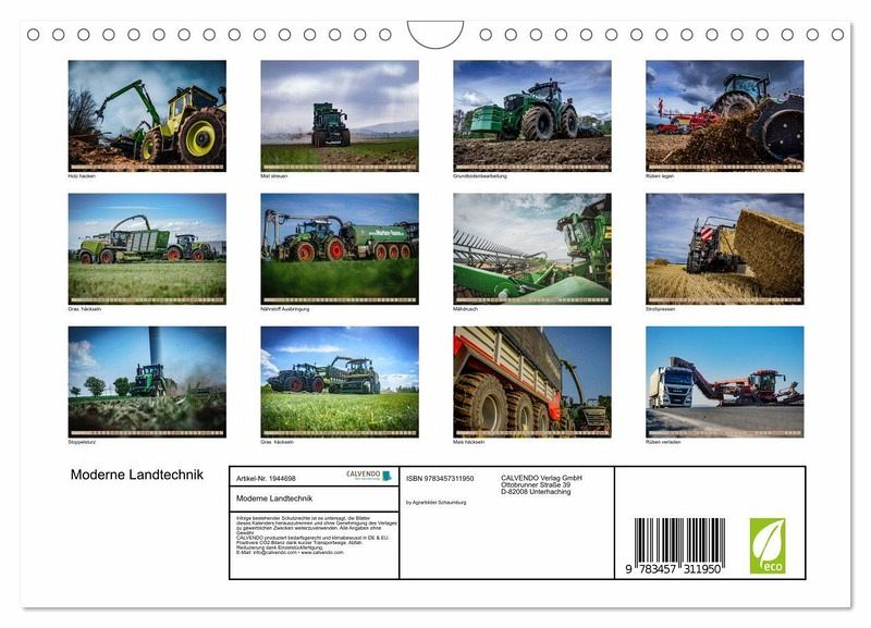 Entdecken Sie unseren modernen Landtechnik Kalender - Ihr perfekter Begleiter für das ganze Jahr! Dieser Kalender begeistert mit beeindruckenden Bildern neuester Landmaschinen und innovativer Technologien. Lassen Sie sich inspirieren von den Fortschritten in der Landwirtschaft und planen Sie Ihre Aktivitäten effizient. Ideal für Landwirte, Technikbegeisterte und alle, die die Welt der modernen Landwirtschaft schätzen. Sichern Sie sich jetzt Ihr Exemplar und bringen Sie frischen Wind in Ihr Jahr!