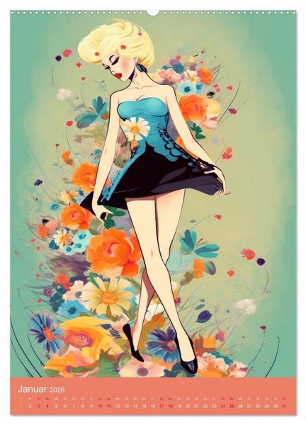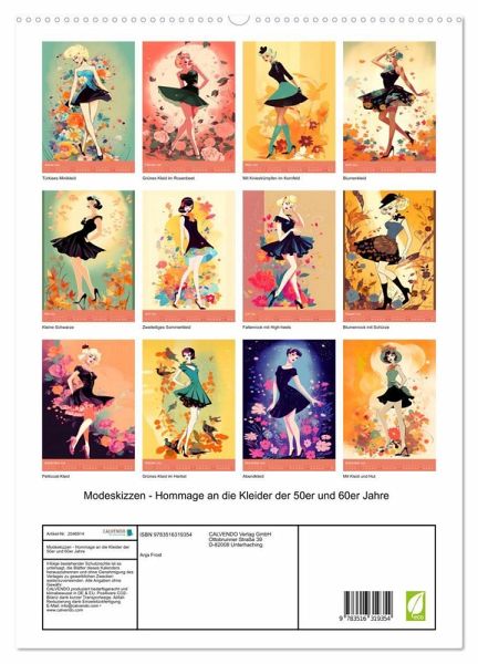 Dieser einzigartiger Kalender zeigt zwölf atemberaubende Illustrationen von Kleidern, die liebevoll durch eine KI entworfen wurden. Inspiriert von der Mode der 50er und 60er Jahre, strahlen diese Kleider zeitlose Eleganz und feminine Raffinesse aus. Jedes Kleidungsstück betont die Schönheit und Eleganz der weiblichen Figur und vermittelt einen Hauch von Vintage-Chic. Der Kalender ist ein Muss für jeden, der sich von nostalgischen Looks inspirieren lässt.