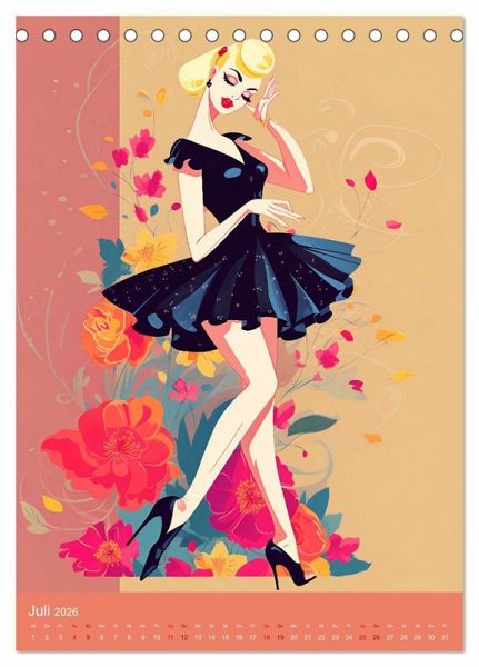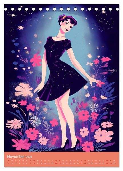 Dieser einzigartiger Kalender zeigt zwölf atemberaubende Illustrationen von Kleidern, die liebevoll durch eine KI entworfen wurden. Inspiriert von der Mode der 50er und 60er Jahre, strahlen diese Kleider zeitlose Eleganz und feminine Raffinesse aus. Jedes Kleidungsstück betont die Schönheit und Eleganz der weiblichen Figur und vermittelt einen Hauch von Vintage-Chic. Der Kalender ist ein Muss für jeden, der sich von nostalgischen Looks inspirieren lässt.