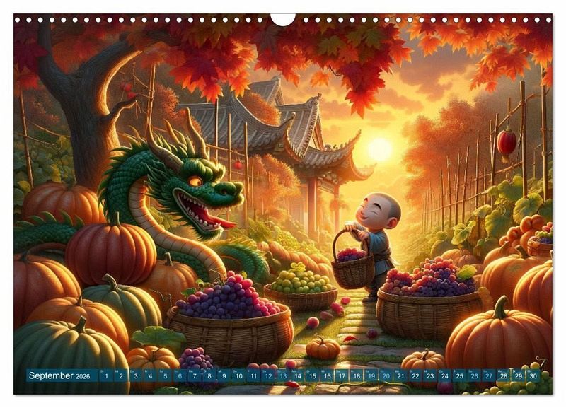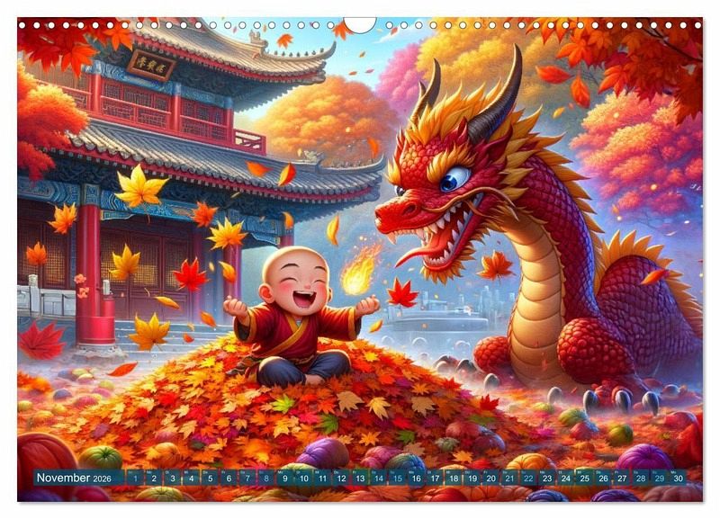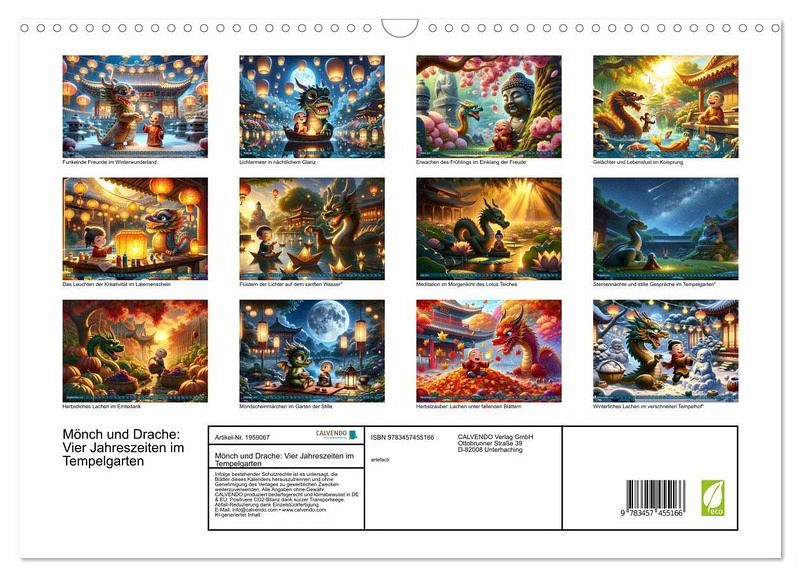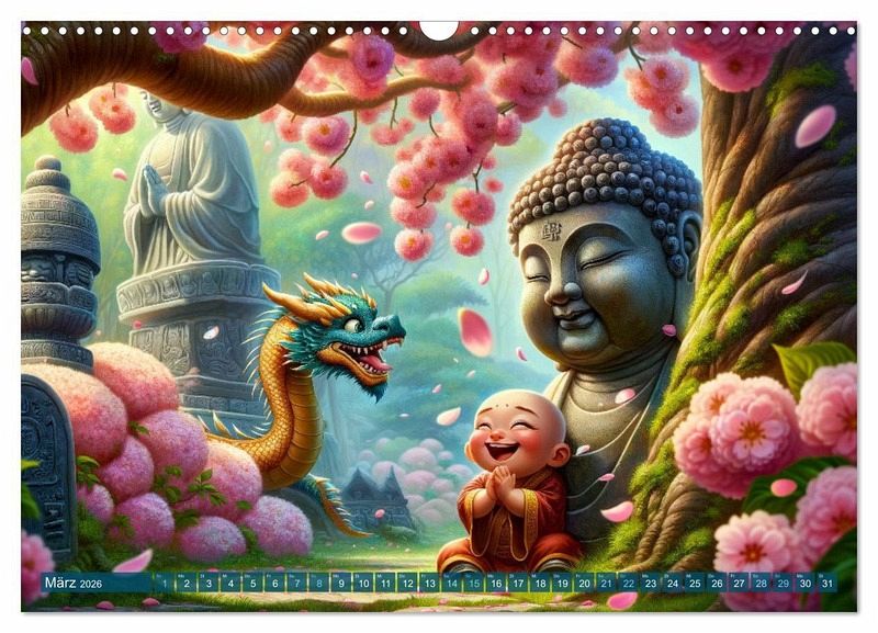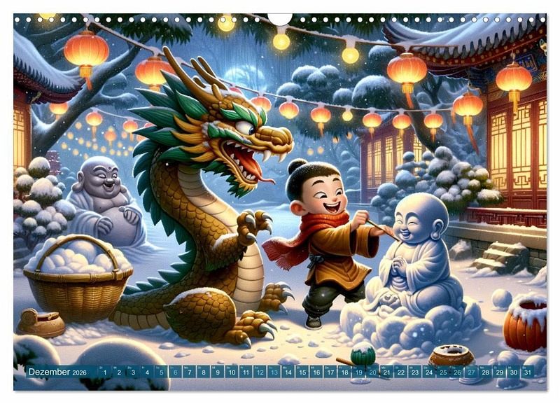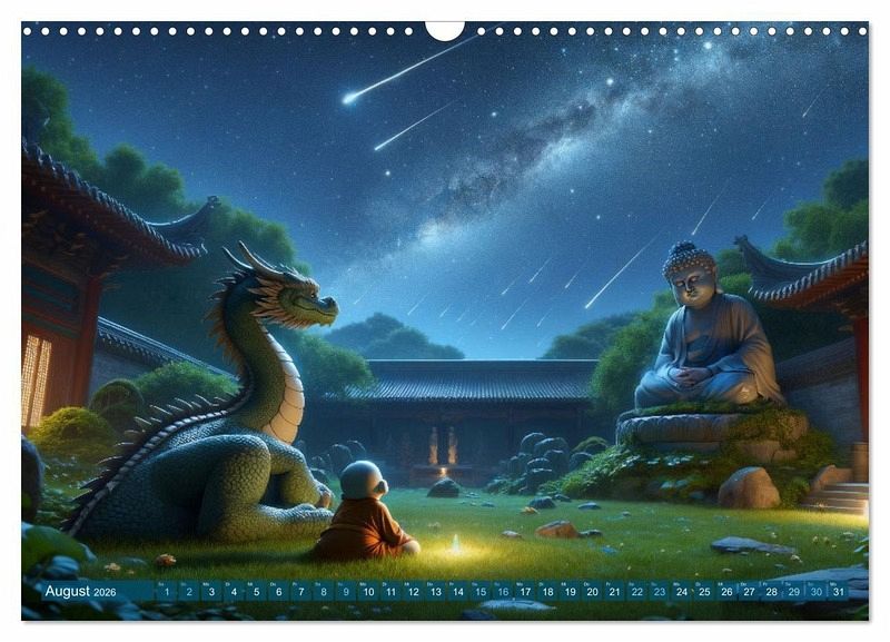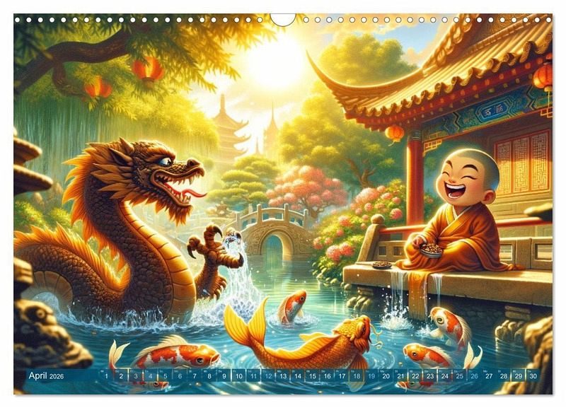 Erleben Sie das Jahr neu mit 'Mönch und Drache: Vier Jahreszeiten im Tempelgarten'. Jedes Kalenderblatt ist ein KI-Kunstwerk, das die Schönheit der Natur und die Freundschaft zwischen einem jungen Mönch und seinem Drachen in lebendigen Farben einfängt. Lassen Sie sich Monat für Monat verzaubern!