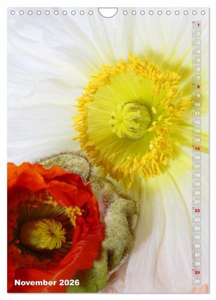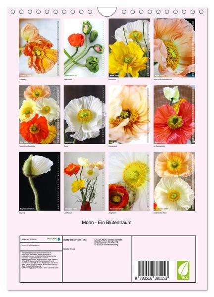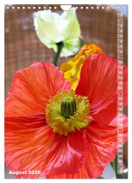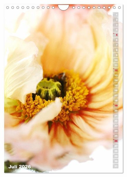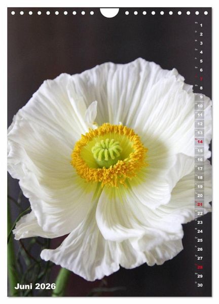 Der kräftige Islandmohn in diesem Kalender fasziniert genauso wie der zarte und filigrane Wiesen- oder Klatschmohn. Das Sprengen der Mohnkapsel und die Entfaltung der Blüte ist ein immer wieder reizvolles Schauspiel, das sich wunderbar bei frischem Mohn in der Vase beobachten lässt. Und, dieser fantasievolle Kalender lässt die vergänglichen Schönheiten für immer blühen. Dieser qualitativ hochwertige