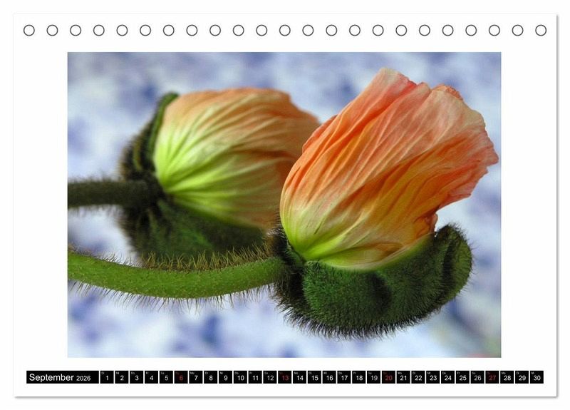 Nicht nur der zarte Wiesenmohn begeistert die Menschen, sondern ebenso die etwas robusteren Zuchtsorten mit ihren dickeren Stängeln und größeren Blüten. Immer wieder ist die Entfaltung der Blüte und das Sprengen der Mohnkapsel ein faszinierendes Vergnügen, bis sich die gefältelte Blüte endlich in ganzer Pracht zeigt. Genießen Sie die verschiedenen Stadien der Mohnblüte in diesem besonderen Kalender.