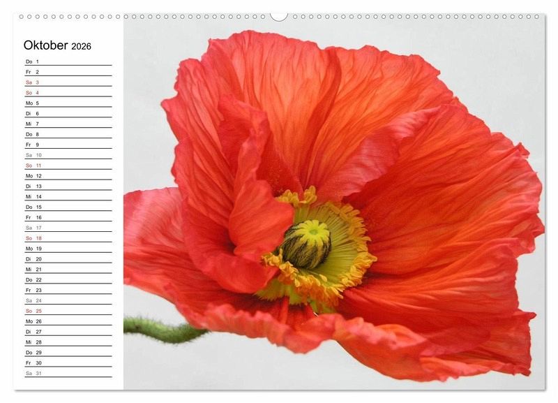 Nicht nur der zarte Wiesenmohn begeistert die Menschen, sondern ebenso die etwas robusteren Zuchtsorten mit ihren dickeren Stängeln und größeren Blüten. Immer wieder ist die Entfaltung der Blüte und das Sprengen der Mohnkapsel ein faszinierendes Vergnügen, bis sich die gefältelte Blüte endlich in ganzer Pracht zeigt. Genießen Sie die verschiedenen Stadien der Mohnblüte in diesem besonderen Kalender.