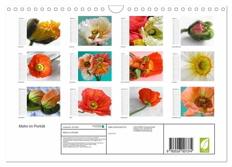 QUALITÄT - Hochwertiger Fotokalender mit 12 wunderschönen Motiven auf lichtbeständigem Bilderdruckpapier, robuste Spiralbindung mit Aufhängebügel.NACHHALTIG - deutliche Abfallreduzierung durch bedarfsgerechte Einzelstückfertigung, umweltfreundliches FSC-zertifiziertes Papier, Produktion in Deutschland, klimabewusste Logistik.PERFEKTES GESCHENK - Kalender für Freunde und Familie, für Kinder und Erwachsene, jung und alt, zu Weihnachten, Geburtstag oder zwischendurch.VIELFALT - Bildkalender in verschiedenen Formaten, z.B. DIN A5, DIN A4, DIN A3 sowie DIN A2. Ob Naturmotiv, Gemälde oder Fotos, ideal für ein persönliches Wohlfühlambiente.1 Jahr lang Mohnblüten-Genuss von Autor(in): Gisela Kruse