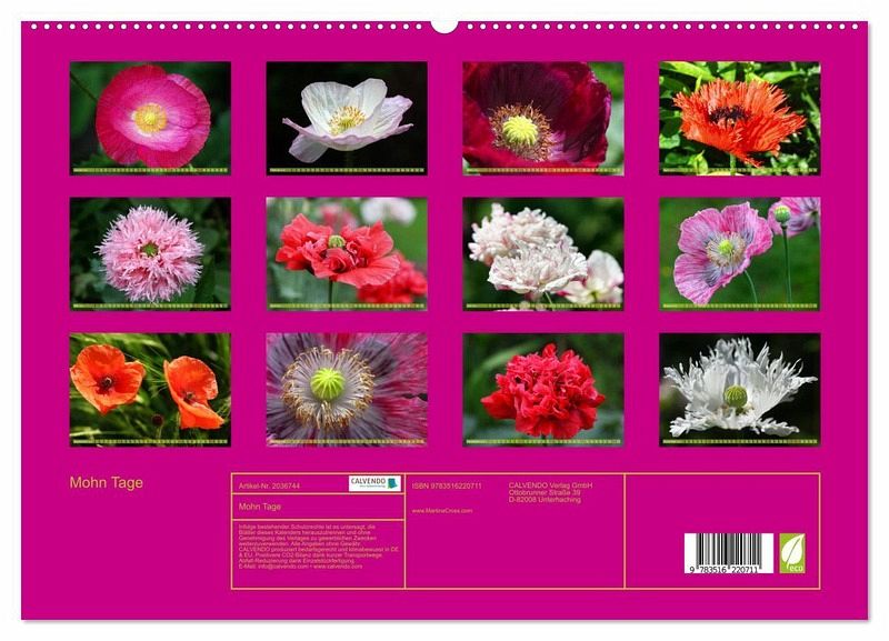 PREMIUM-LINIE - Brillanter Fotokalender mit 12 wunderschönen Motiven, Kunstdruck in Hochglanz in Museumsqualität.QUALITÄT - edle Materialien, stabile Rückwand mit 2 innovativen Einstecktaschen für eine optimale Präsentation an der Wand.NACHHALTIG - deutliche Abfallreduzierung durch bedarfsgerechte Einzelstückfertigung, umweltfreundliches FSC-zertifiziertes Papier, Produktion in Deutschland, klimabewusste Logistik.PERFEKTES GESCHENK - Kalender für Freunde und Familie, für Kinder und Erwachsene, jung und alt, zu Weihnachten, Geburtstag oder zwischendurch.Mohn in seiner schönsten Form - Geniessen Sie 12 wunderbare Mohn Portraits von Autor(in): Martina Cross