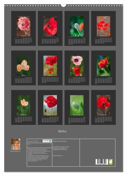 QUALITÄT - Hochwertiger Fotokalender mit 12 wunderschönen Motiven auf lichtbeständigem Bilderdruckpapier, robuste Spiralbindung mit Aufhängebügel.NACHHALTIG - deutliche Abfallreduzierung durch bedarfsgerechte Einzelstückfertigung, umweltfreundliches FSC-zertifiziertes Papier, Produktion in Deutschland, klimabewusste Logistik.PERFEKTES GESCHENK - Kalender für Freunde und Familie, für Kinder und Erwachsene, jung und alt, zu Weihnachten, Geburtstag oder zwischendurch.VIELFALT - Bildkalender in verschiedenen Formaten, z.B. DIN A5, DIN A4, DIN A3 sowie DIN A2. Ob Naturmotiv, Gemälde oder Fotos, ideal für ein persönliches Wohlfühlambiente.Klassischer Mohn in vielen Auftritten von Autor(in): Bogna Mazunov