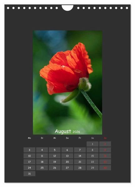 QUALITÄT - Hochwertiger Fotokalender mit 12 wunderschönen Motiven auf lichtbeständigem Bilderdruckpapier, robuste Spiralbindung mit Aufhängebügel.NACHHALTIG - deutliche Abfallreduzierung durch bedarfsgerechte Einzelstückfertigung, umweltfreundliches FSC-zertifiziertes Papier, Produktion in Deutschland, klimabewusste Logistik.PERFEKTES GESCHENK - Kalender für Freunde und Familie, für Kinder und Erwachsene, jung und alt, zu Weihnachten, Geburtstag oder zwischendurch.VIELFALT - Bildkalender in verschiedenen Formaten, z.B. DIN A5, DIN A4, DIN A3 sowie DIN A2. Ob Naturmotiv, Gemälde oder Fotos, ideal für ein persönliches Wohlfühlambiente.Klassischer Mohn in vielen Auftritten von Autor(in): Bogna Mazunov