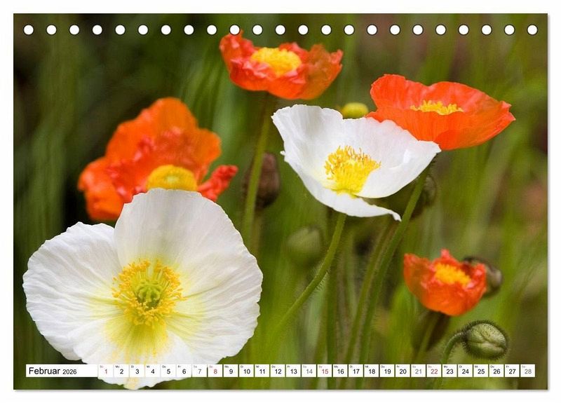 Mohn - in gelb, rosa, weiß oder rot - ist eine der beliebtesten Gartenpflanzen. Mohnblüten sind ein Blickfang in jedem Blumenbeet und nicht nur für Gartenfreunde eine Zierde rund ums Haus. Dieser Kalender zeigt die schönsten Blütenvarianten.