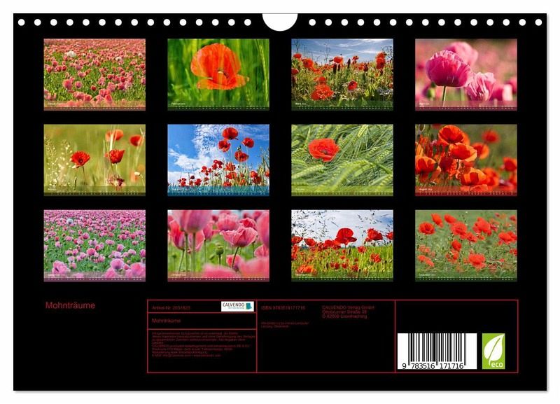 Dieser Kalender verzaubert über das ganze Jahr mit traumhaften Bildern vom Mohn - sei es in freier Natur oder auf angelegten Feldern. Bilder vom Mohn in allen Farben und Gestaltungsvarianten bringen das ganze Jahr über den Sommer ins Haus!