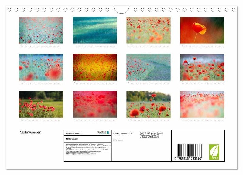 QUALITÄT - Hochwertiger Fotokalender mit 12 wunderschönen Motiven auf lichtbeständigem Bilderdruckpapier, robuste Spiralbindung mit Aufhängebügel.NACHHALTIG - deutliche Abfallreduzierung durch bedarfsgerechte Einzelstückfertigung, umweltfreundliches FSC-zertifiziertes Papier, Produktion in Deutschland, klimabewusste Logistik.PERFEKTES GESCHENK - Kalender für Freunde und Familie, für Kinder und Erwachsene, jung und alt, zu Weihnachten, Geburtstag oder zwischendurch.VIELFALT - Bildkalender in verschiedenen Formaten, z.B. DIN A5, DIN A4, DIN A3 sowie DIN A2. Ob Naturmotiv, Gemälde oder Fotos, ideal für ein persönliches Wohlfühlambiente.Jeden Monat ein kleines Farbenspiel: Tauchen Sie ein in die zauberhafte Welt blühender Mohnwiesen und spüren Sie die Leichtigkeit der Natur. von Autor(in): Heike Odermatt