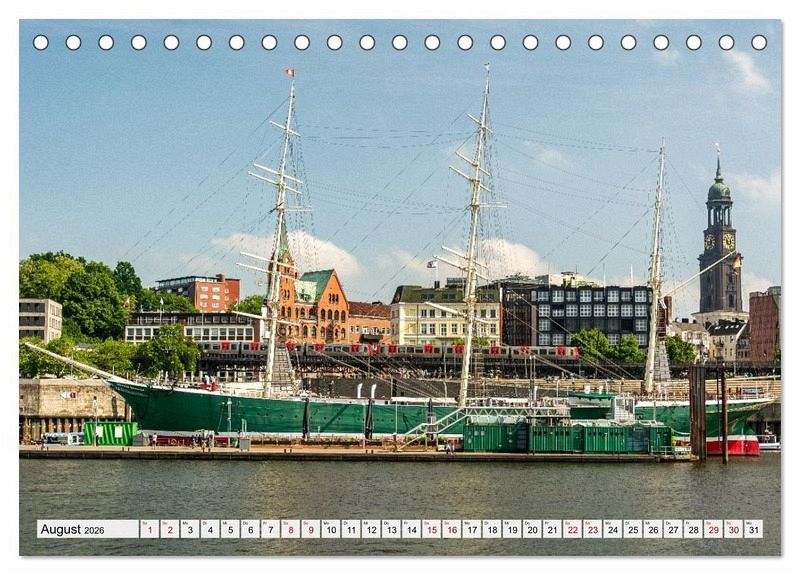 August: Rickmer Rickmers und Hamburg Skyline
