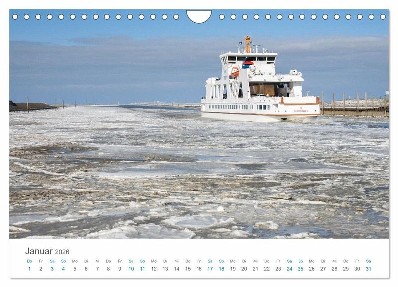 Januar: Abfahrt der Fähre nach Norderney bei Eis und Schnee