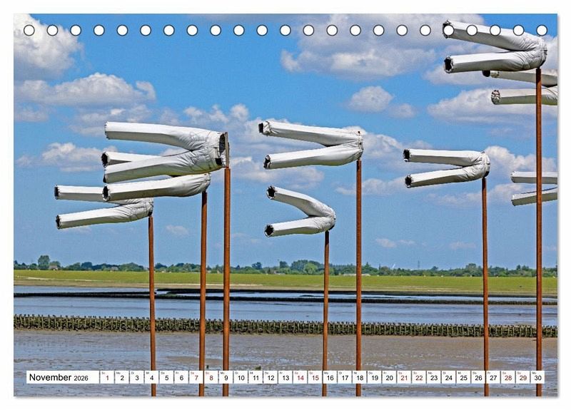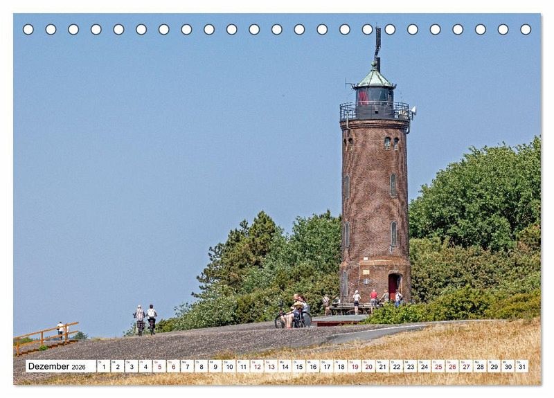 Dezember: Der Leuchtturmvon Sankt Peter-Böhl von 1892. Von der umlaufenden Bank hat man einen prächtigen Ausblick weit über die Salzwiesen zur See