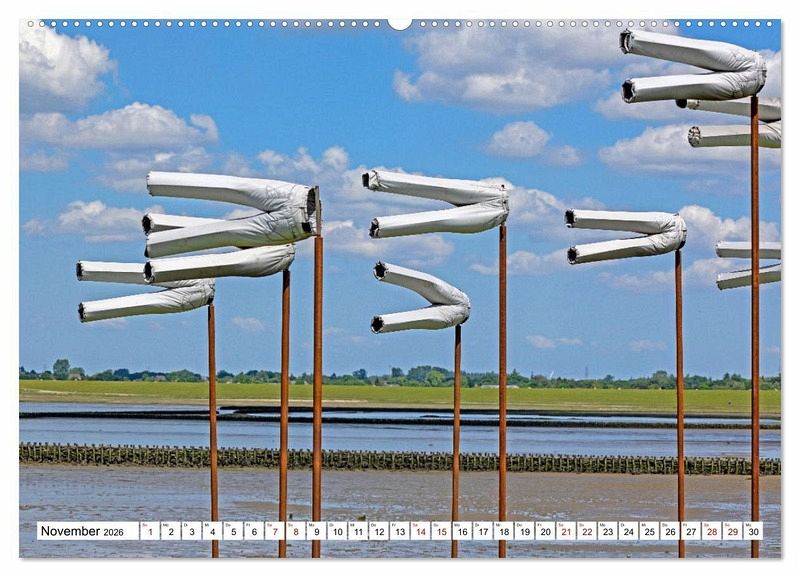 Dezember: Der Leuchtturm von Sankt Peter-Böhl von 1892. Von der umlaufenden Bank hat man einen prächtigen Ausblick weit über die Salzwiesen zur See