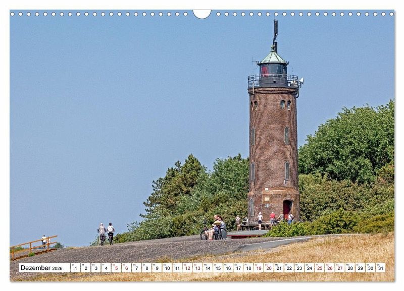 Dezember: Der Leuchtturm von Sankt Peter-Böhl von 1892. Von der umlaufenden Bank hat man einen prächtigen Ausblick weit über die Salzwiesen zur See