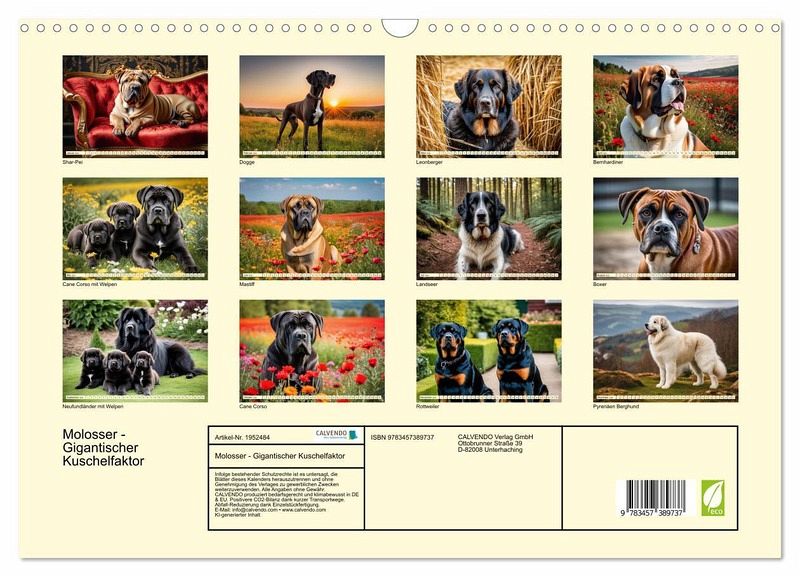 QUALITÄT - Hochwertiger Fotokalender mit 12 wunderschönen Motiven auf lichtbeständigem Bilderdruckpapier, robuste Spiralbindung mit Aufhängebügel.NACHHALTIG - deutliche Abfallreduzierung durch bedarfsgerechte Einzelstückfertigung, umweltfreundliches FSC-zertifiziertes Papier, Produktion in Deutschland, klimabewusste Logistik.PERFEKTES GESCHENK - Kalender für Freunde und Familie, für Kinder und Erwachsene, jung und alt, zu Weihnachten, Geburtstag oder zwischendurch.VIELFALT - Bildkalender in verschiedenen Formaten, z.B. DIN A5, DIN A4, DIN A3 sowie DIN A2. Ob Naturmotiv, Gemälde oder Fotos, ideal für ein persönliches Wohlfühlambiente.Neufundländer, Mastiff, Cane Corso und Co. von Autor(in): Claudia Kleemann