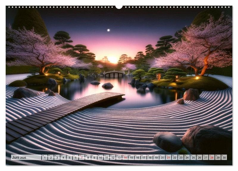 Juni: Japanischer Zen-Garten in der Dämmerung