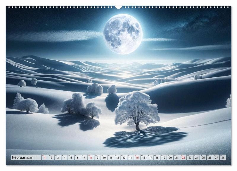 Februar: Unberührte Schneelandschaft bei Vollmond