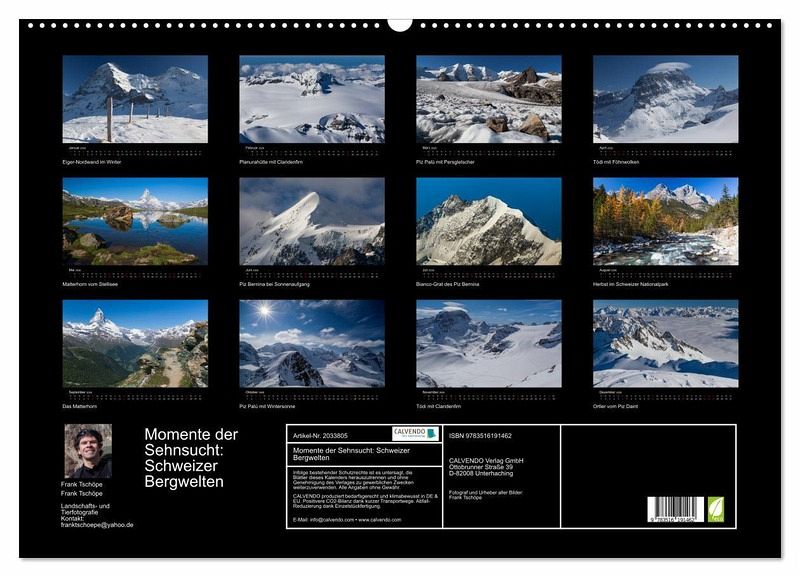 QUALITÄT - Hochwertiger Fotokalender mit 12 wunderschönen Motiven auf lichtbeständigem Bilderdruckpapier, robuste Spiralbindung mit Aufhängebügel.NACHHALTIG - deutliche Abfallreduzierung durch bedarfsgerechte Einzelstückfertigung, umweltfreundliches FSC-zertifiziertes Papier, Produktion in Deutschland, klimabewusste Logistik.PERFEKTES GESCHENK - Kalender für Freunde und Familie, für Kinder und Erwachsene, jung und alt, zu Weihnachten, Geburtstag oder zwischendurch.VIELFALT - Bildkalender in verschiedenen Formaten, z.B. DIN A5, DIN A4, DIN A3 sowie DIN A2. Ob Naturmotiv, Gemälde oder Fotos, ideal für ein persönliches Wohlfühlambiente.Berühmte Berge der Schweiz von Autor(in): Frank Tschöpe