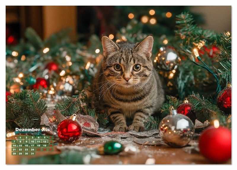 Dezember: Weihnachten - nur mit Katze und ihrer Dekokunst