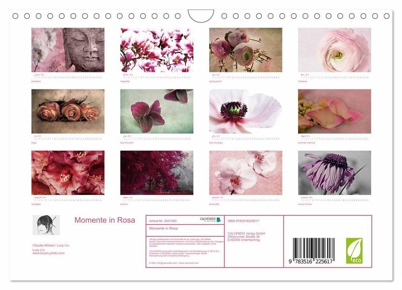 QUALITÄT - Hochwertiger Fotokalender mit 12 wunderschönen Motiven auf lichtbeständigem Bilderdruckpapier, robuste Spiralbindung mit Aufhängebügel.NACHHALTIG - deutliche Abfallreduzierung durch bedarfsgerechte Einzelstückfertigung, umweltfreundliches FSC-zertifiziertes Papier, Produktion in Deutschland, klimabewusste Logistik.PERFEKTES GESCHENK - Kalender für Freunde und Familie, für Kinder und Erwachsene, jung und alt, zu Weihnachten, Geburtstag oder zwischendurch.VIELFALT - Bildkalender in verschiedenen Formaten, z.B. DIN A5, DIN A4, DIN A3 sowie DIN A2. Ob Naturmotiv, Gemälde oder Fotos, ideal für ein persönliches Wohlfühlambiente.Alles in Rosa, Florales, Stillleben, Meditation...Wellness für die Seele von Autor(in): Claudia Möckel