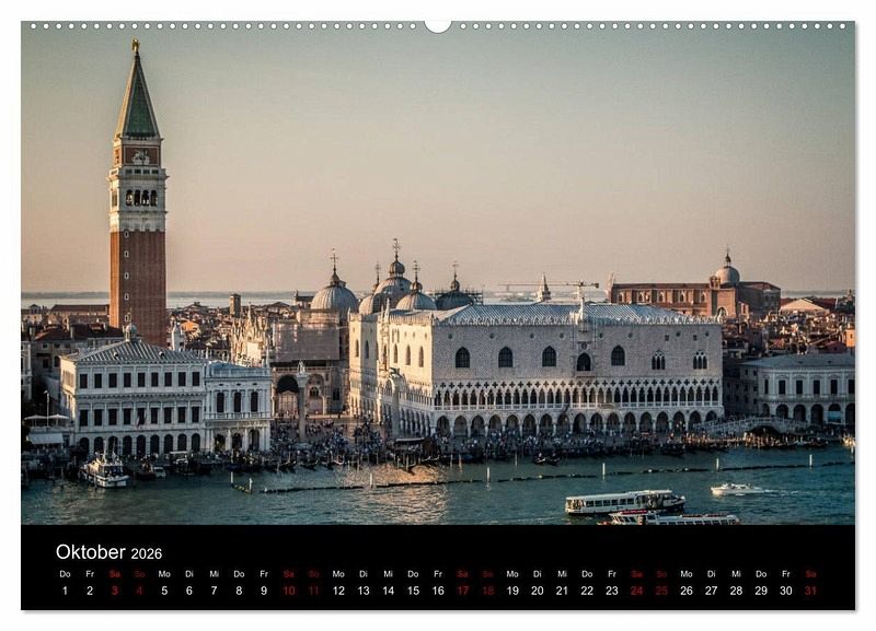 Die Stadt, welche im Nordosten Italiens ihr historisches Zentrum auf einigen größeren Inseln in der Lagune von Venedig liegen hat, ist immer eine Reise wert. Das Spazieren gehen in den kleinen engen Gassen, eine ruhige erholsame Fahrt mit einer der vielen Godeln oder das genießen eines geschmackvollen Espresso, trägt dazu bei, einen Besuch nie zu vergessen. Dieser qualitativ hochwertige Kalender gehört zur exklusiven CALVENDO Gold-Edition.