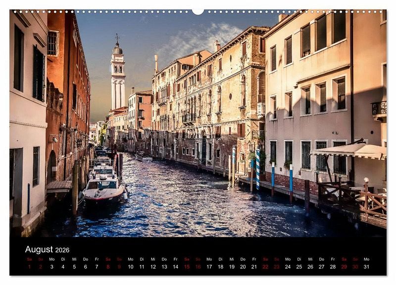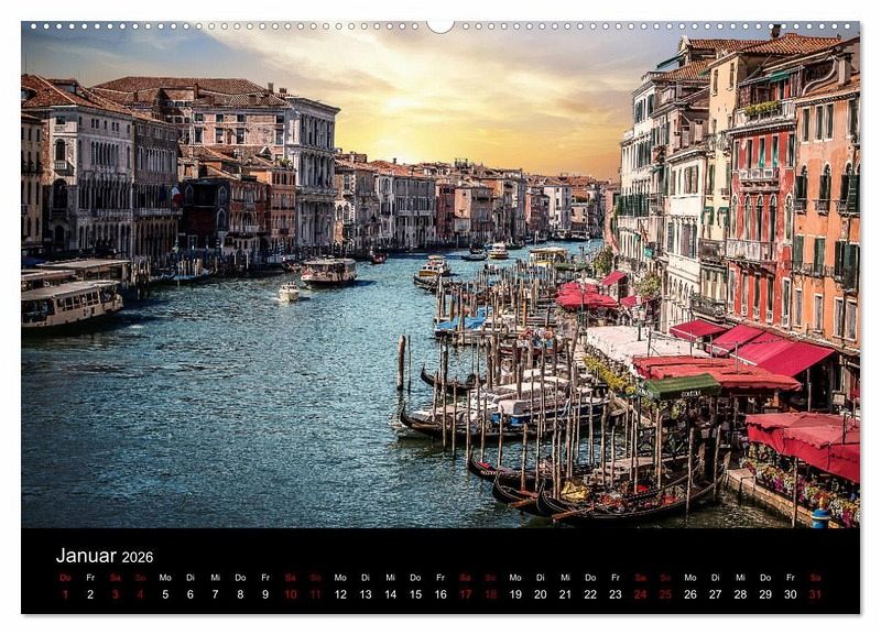 Die Stadt, welche im Nordosten Italiens ihr historisches Zentrum auf einigen größeren Inseln in der Lagune von Venedig liegen hat, ist immer eine Reise wert. Das Spazieren gehen in den kleinen engen Gassen, eine ruhige erholsame Fahrt mit einer der vielen Godeln oder das genießen eines geschmackvollen Espresso, trägt dazu bei, einen Besuch nie zu vergessen. Dieser qualitativ hochwertige Kalender gehört zur exklusiven CALVENDO Gold-Edition.
