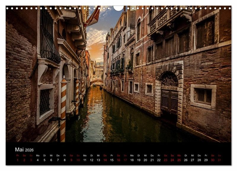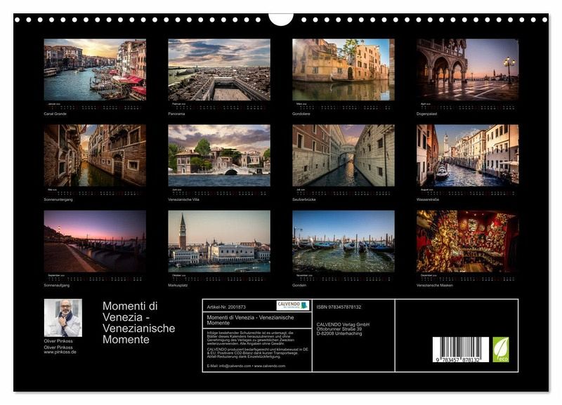 Die Stadt, welche im Nordosten Italiens ihr historisches Zentrum auf einigen größeren Inseln in der Lagune von Venedig liegen hat, ist immer eine Reise wert. Das Spazieren gehen in den kleinen engen Gassen, eine ruhige erholsame Fahrt mit einer der vielen Godeln oder das genießen eines geschmackvollen Espresso, trägt dazu bei, einen Besuch nie zu vergessen. Dieser qualitativ hochwertige Kalender gehört zur exklusiven CALVENDO Gold-Edition.