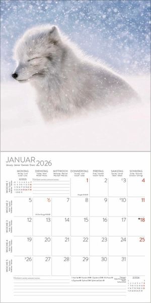 Hochwertig und ohne Plastikfolie präsentiert dieser Kalender einzigartige und stimmungsvolle Tierfotografien, die faszinierende Augenblicke der Tierwelt einfangen. Ein Muss für alle, die die Kunst der Tierfotografie schätzen. Mit Platz für Eintragungen im Kalendarium, Jahresübersicht und Ferienterminen.